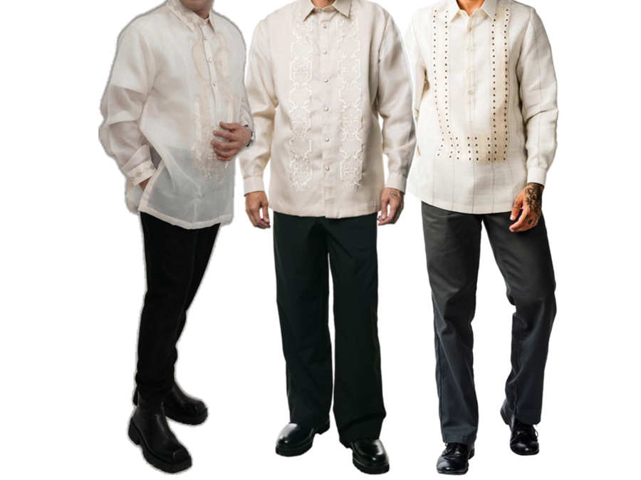 Light long-sleeve shirt with slacks or chinos (pastel or soft colors)